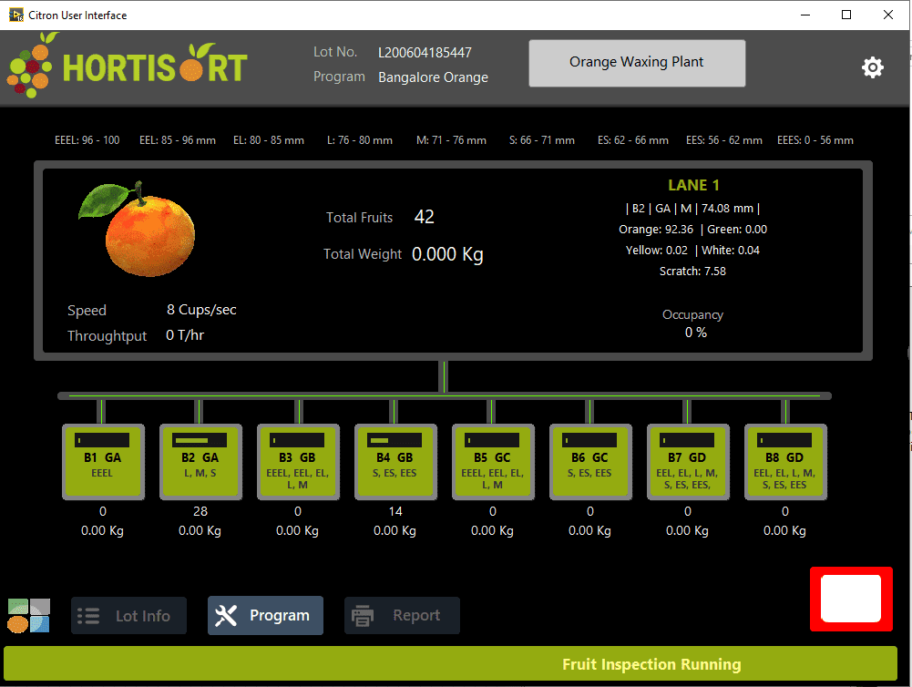 Information on each fruit, each lot, each season & machine runtime.